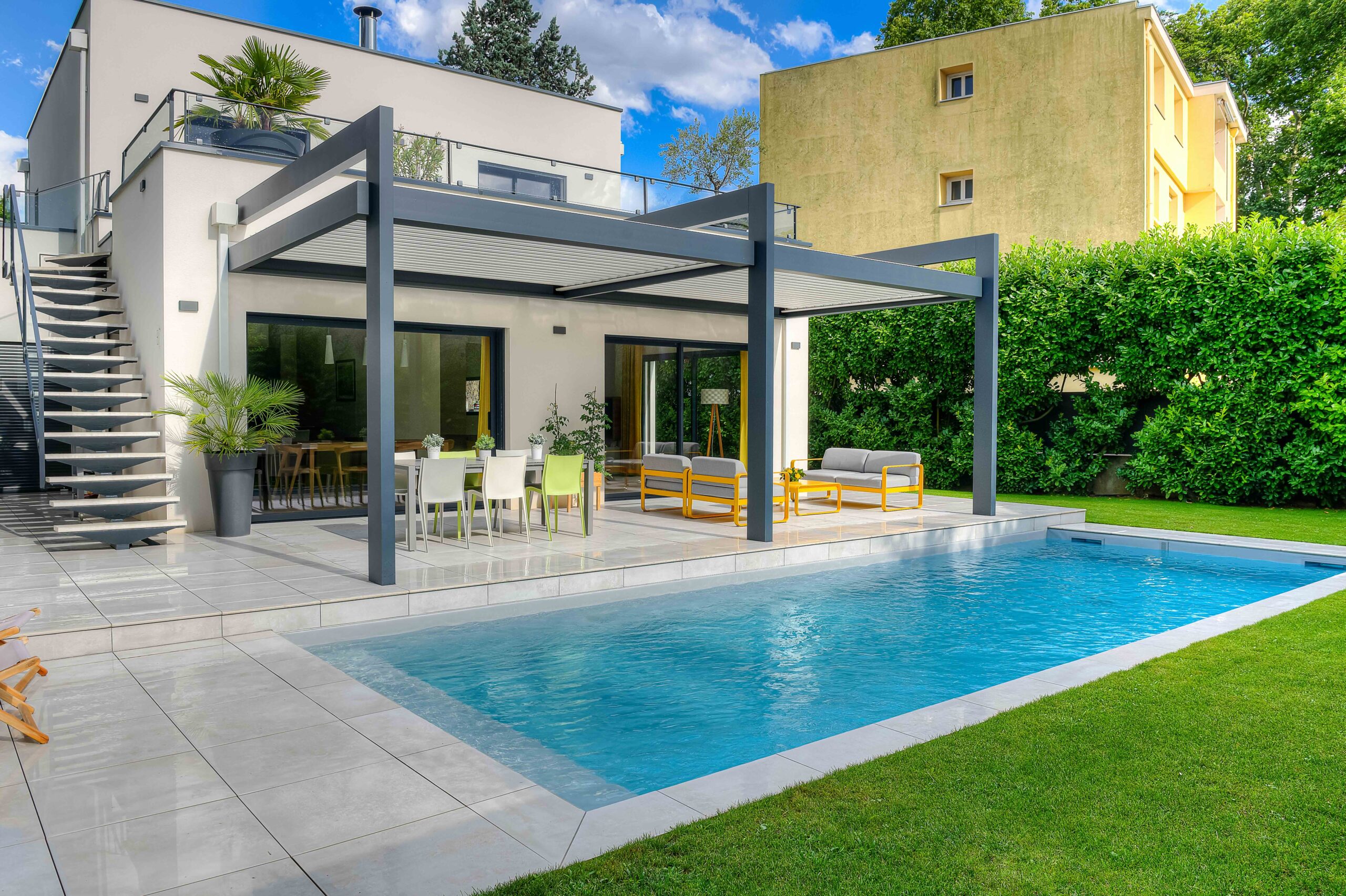 Créateur et fabricant de pergolas bioclimatiques , carports et pool houses